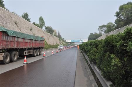 应用范围:     砂封层主要应用于高速公路,一、二级公路沥青路面的预防性养护。可以进行美化路缘、路肩施工。经过砂封层施工后可以改变新旧路面的外观及颜色。施工说明:砂封层是一种层铺的施工工艺。采用同步碎石封层设备将聚合物改性粘结材料和骨料金刚砂同时撒布施工的一种施工工艺。粘结材料应选择高浓高粘且具有一定渗透型和还原性。骨料需选择耐磨的金刚砂。技术特点:(1)常温施工,无需加热,节能环保。(2)用来解决沥青路表面沥青老化出现的贫油状况。(3)解决原路面出现的麻面、松散掉粒、轻微裂缝等现象。(4)新路面可以起到防水的作用。(5)增加路面摩擦系数和耐磨性能。施工工艺:封闭交通→清理路面→病害处理→砂封层施工→养生→开放交通